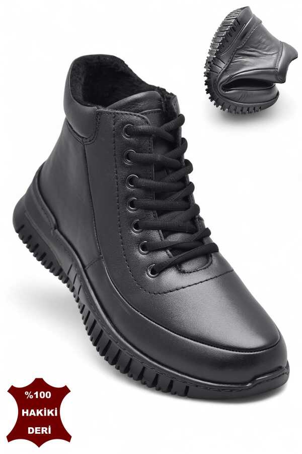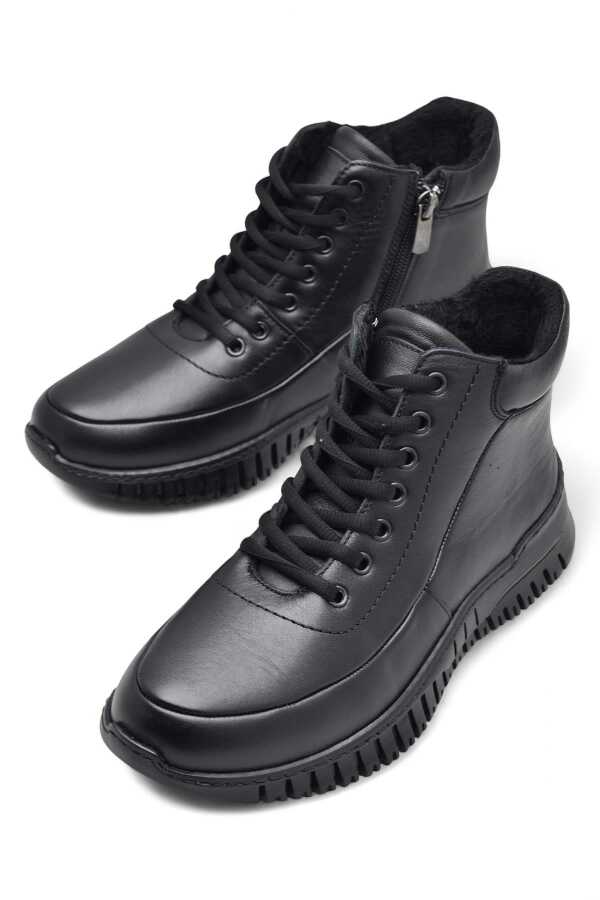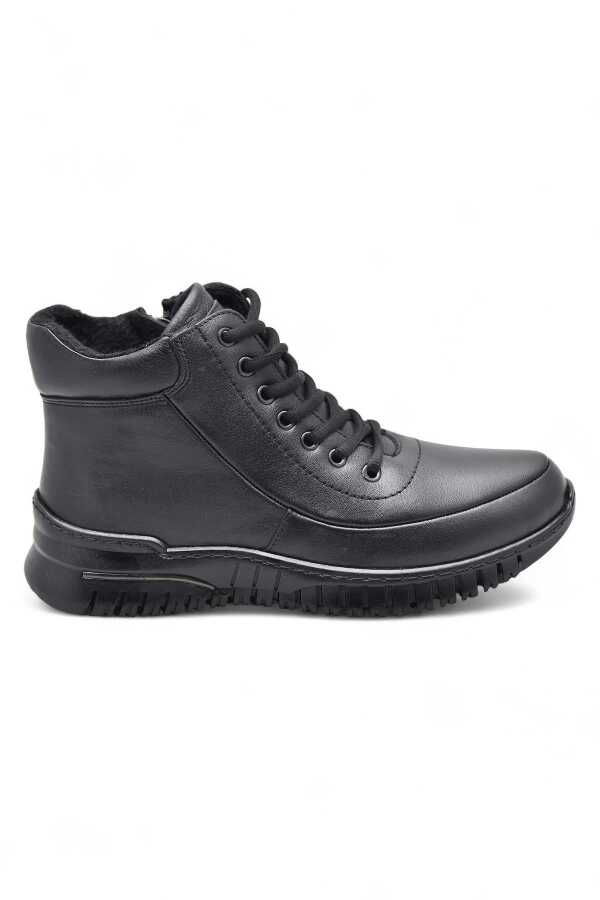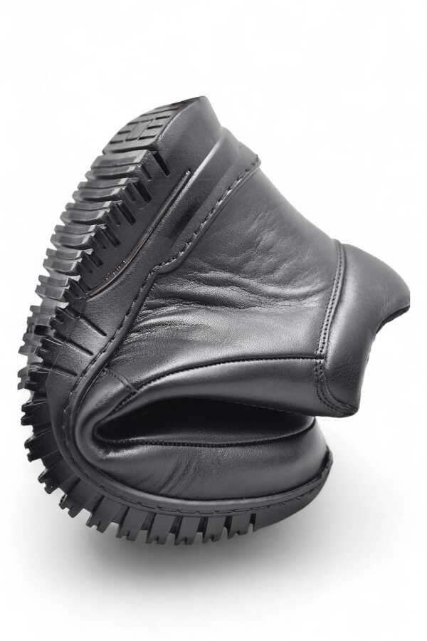 1454 Tam Ortopedik Siyah Hakiki Deri Kadın Bot Lastikli Fermuarlı Anne Kışlık Deri Bot