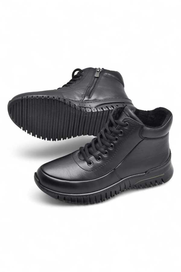 1456 Tam Ortopedik Siyah Hakiki Deri Kadın Bot Çift Fermuarlı Anne Kışlık Deri Bot