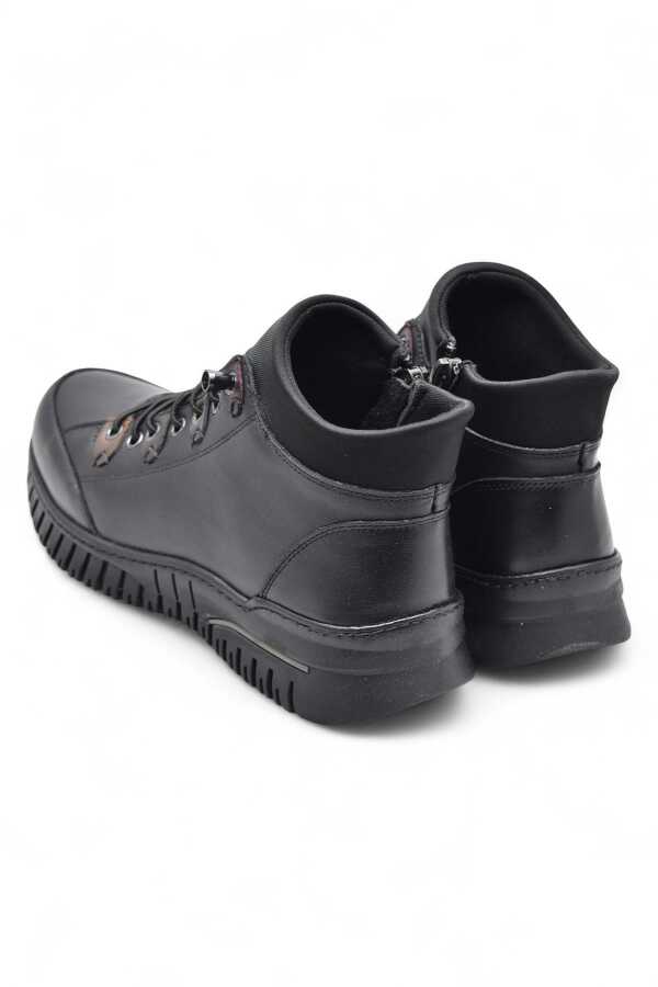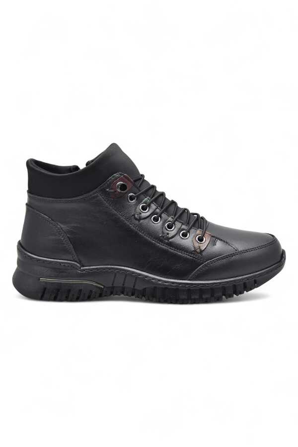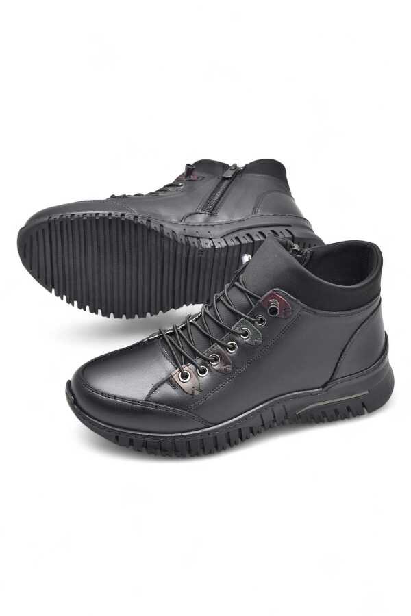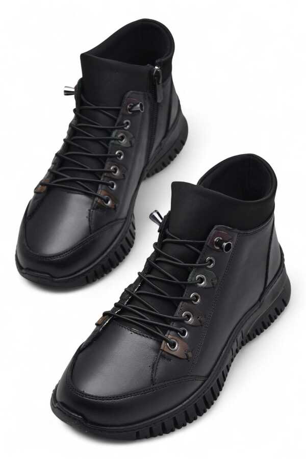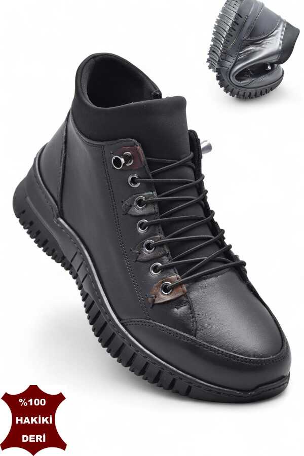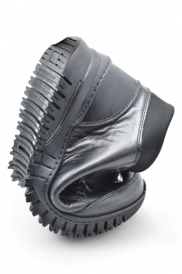 1454 Tam Ortopedik Siyah Hakiki Deri Kadın Bot Lastikli Fermuarlı Anne Kışlık Deri Bot