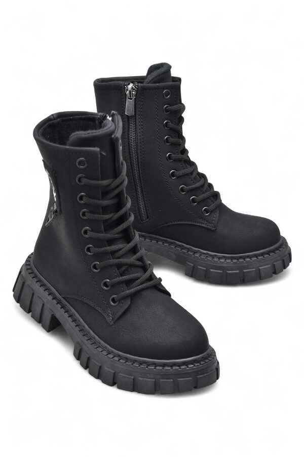 236 Ortopedik Bağcıklı Fermuarlı Kız Çocuk Bot Ayakkabı İçi Yünlü Kız Çocuk Botu