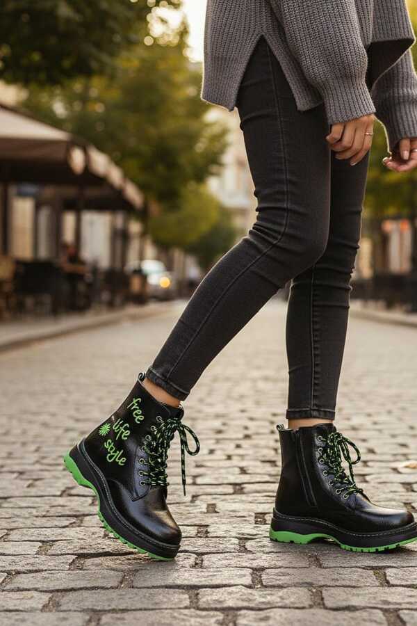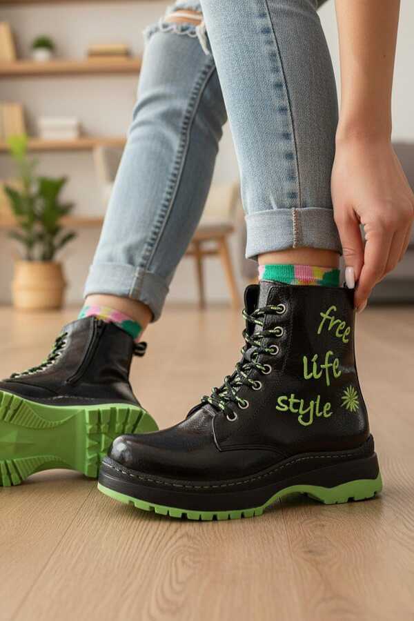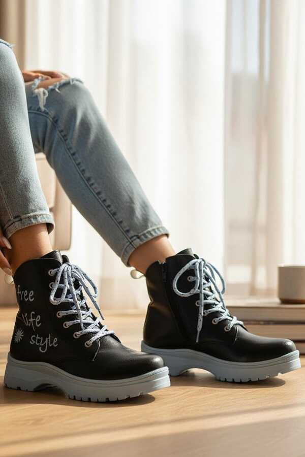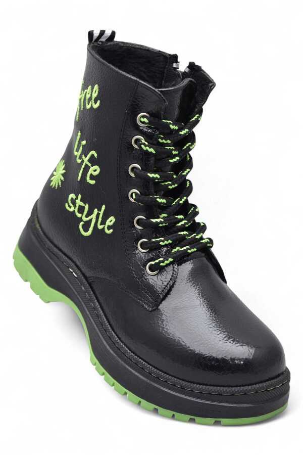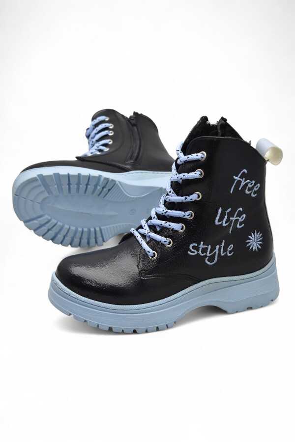 236 Ortopedik Bağcıklı Fermuarlı Kız Çocuk Bot Ayakkabı İçi Yünlü Kız Çocuk Botu