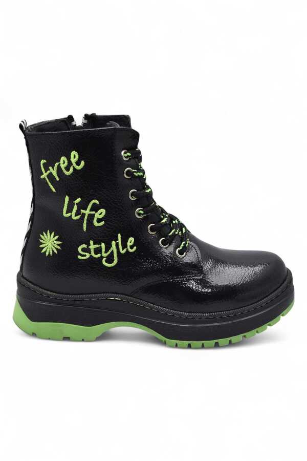 2396 Ortopedik Bağcıklı Fermuarlı Kız Çocuk Bot Ayakkabı İçi Yünlü Kız Çocuk Botu