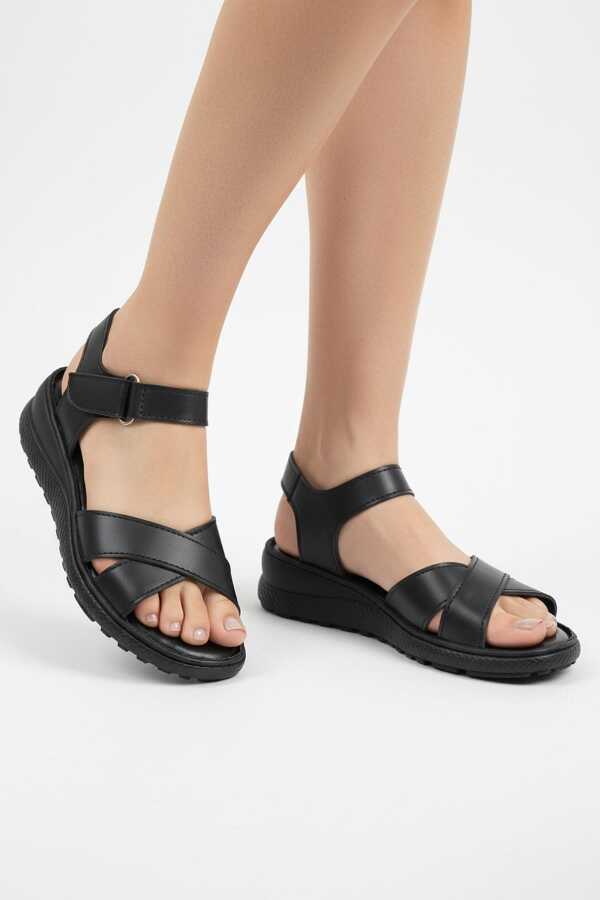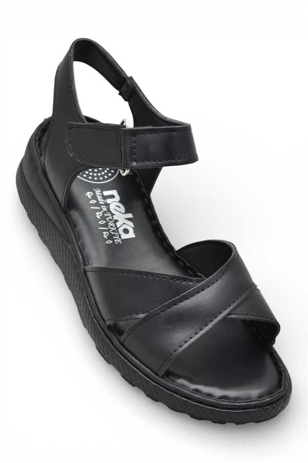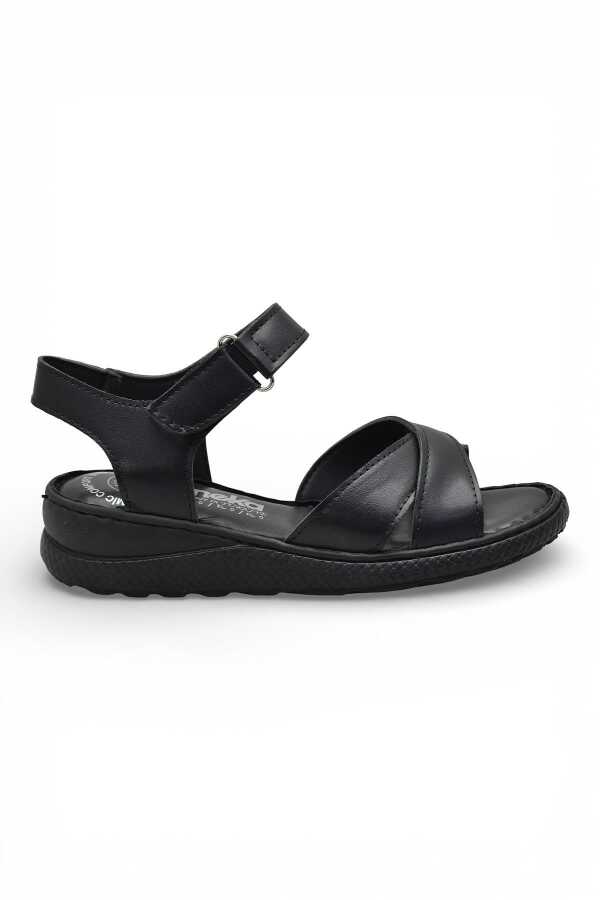 26-102S TAM Ortopedik Taban Günlük Kadın Sandalet Terlik Siyah Sandalet