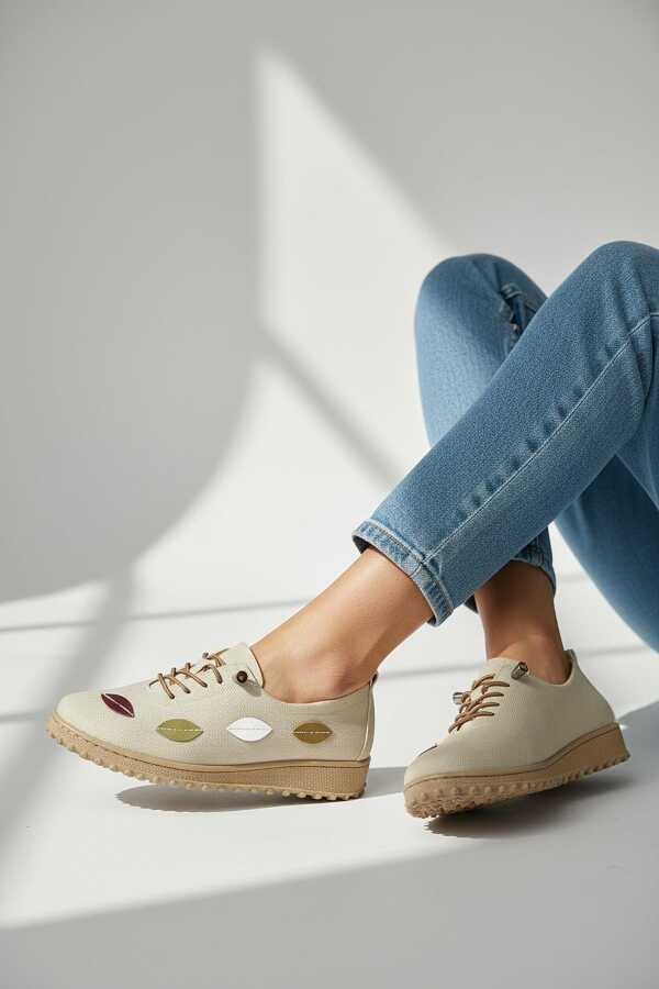 376K Hafif Esnek Ortopedik Taban Günlük İçi Deri Kadın Ayakkabı Casual Ayakkabı