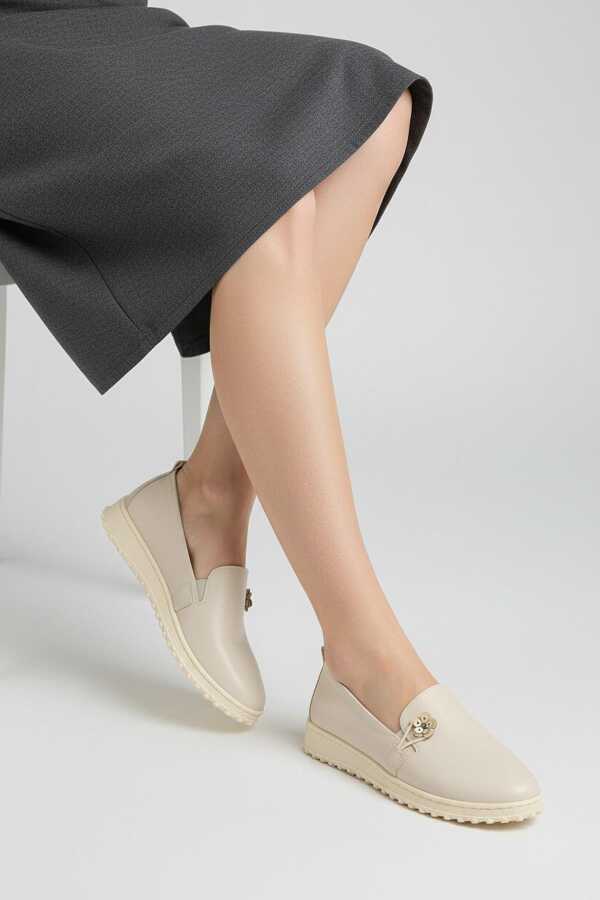 377K Hafif Esnek Ortopedik Taban Günlük İçi Deri Kadın Ayakkabı Casual Laofer Ayakkabı