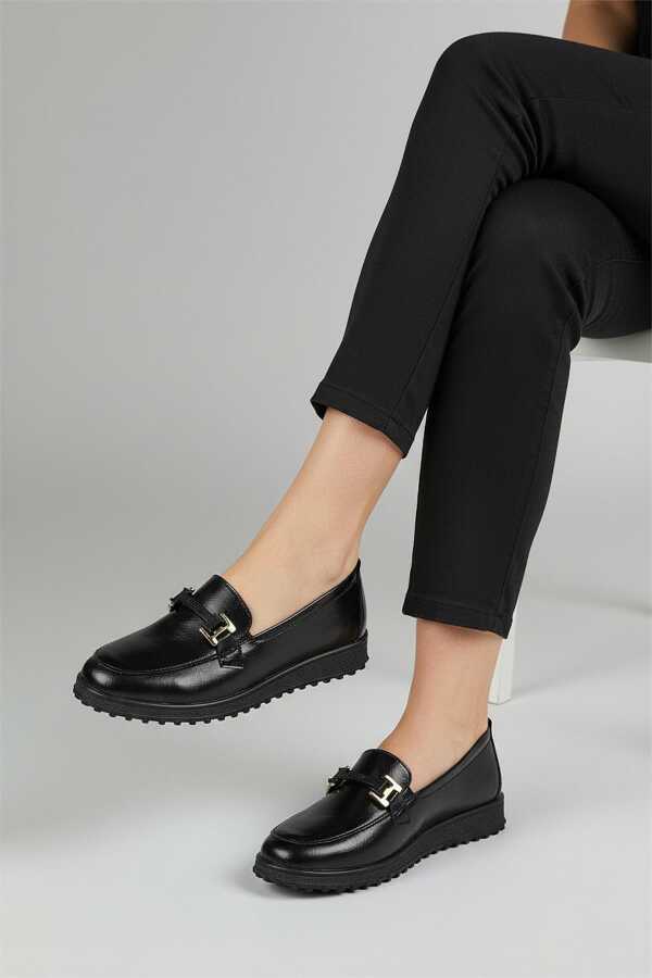 377K Hafif Esnek Ortopedik Taban Günlük İçi Deri Kadın Ayakkabı Casual Laofer Ayakkabı