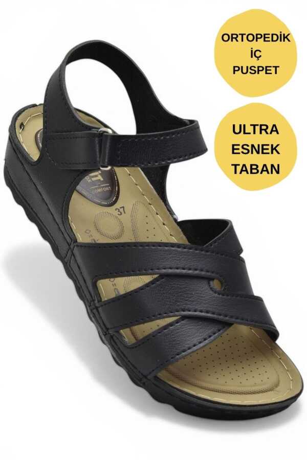 452 TAM Ortopedik Taban Günlük Kadın Sandalet Terlik Siyah Sandalet