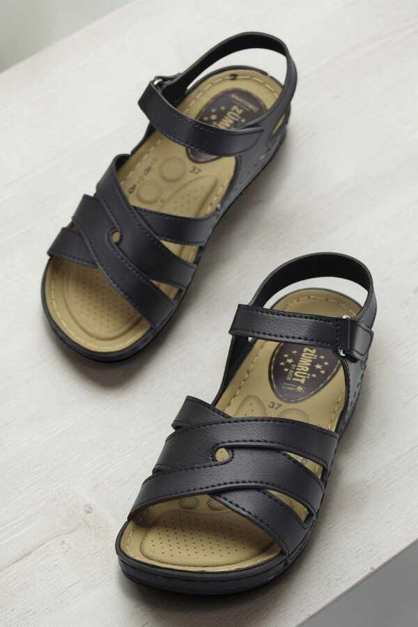 26-105S TAM Ortopedik Taban Günlük Kadın Sandalet Terlik Siyah Sandalet