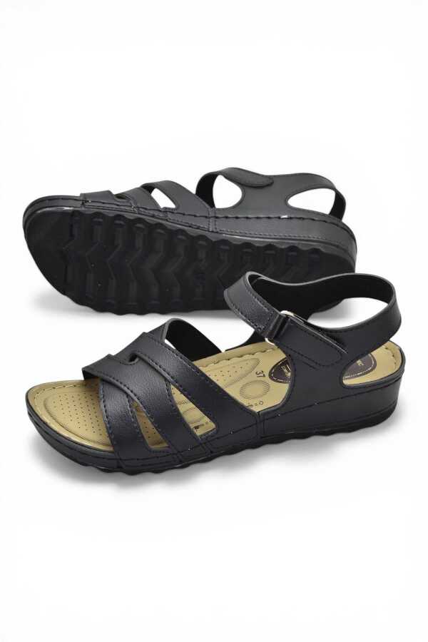 26-103S TAM Ortopedik Taban Günlük Kadın Sandalet Terlik Siyah Sandalet