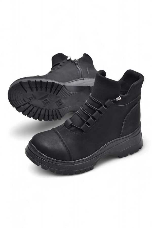4560 Kadın Bot Ayakkabı Kaymaz Taban Fermuarlı Bağcıklı Günlük Kadın Bot