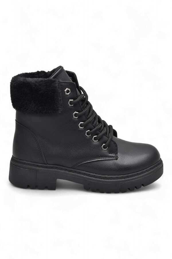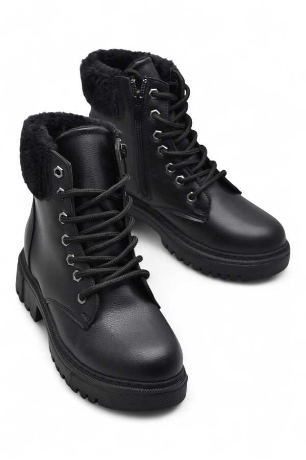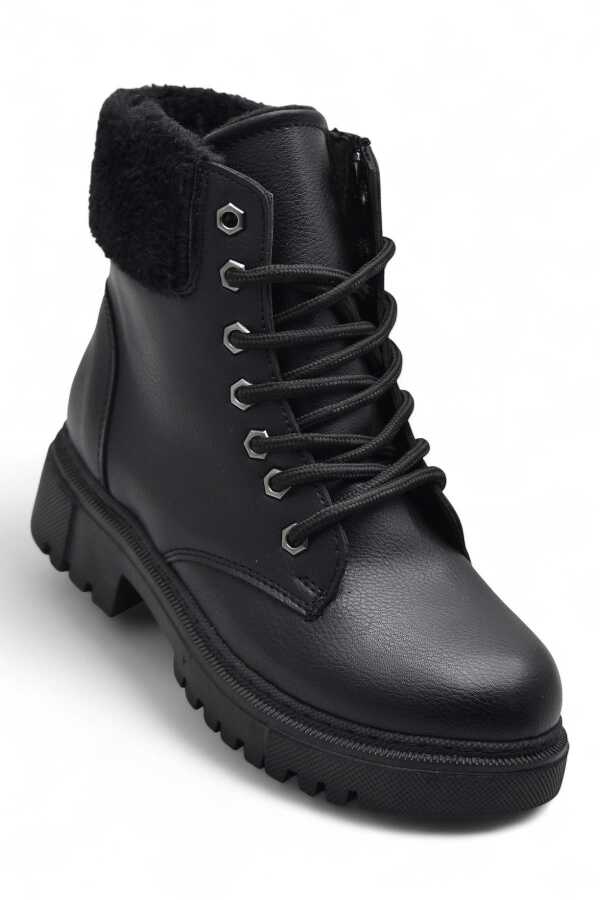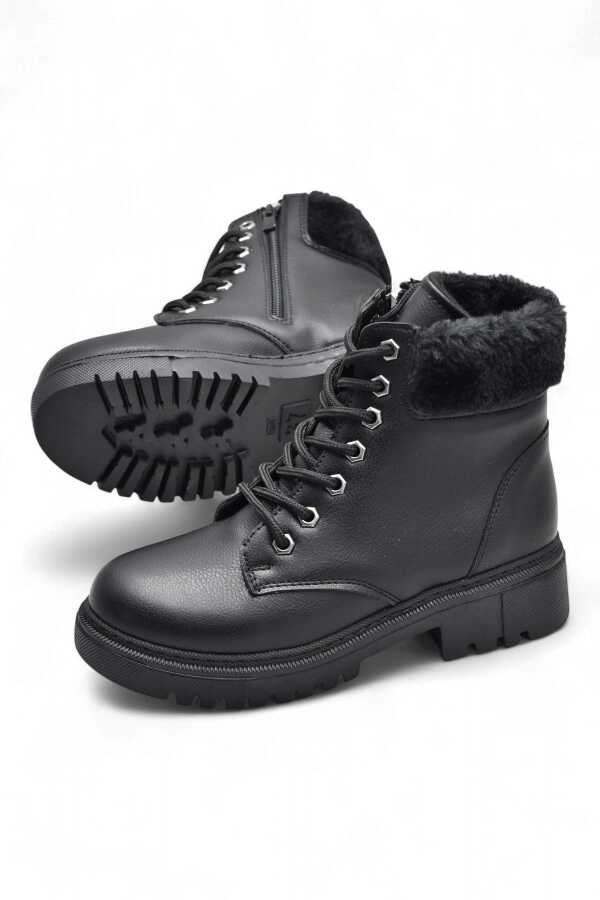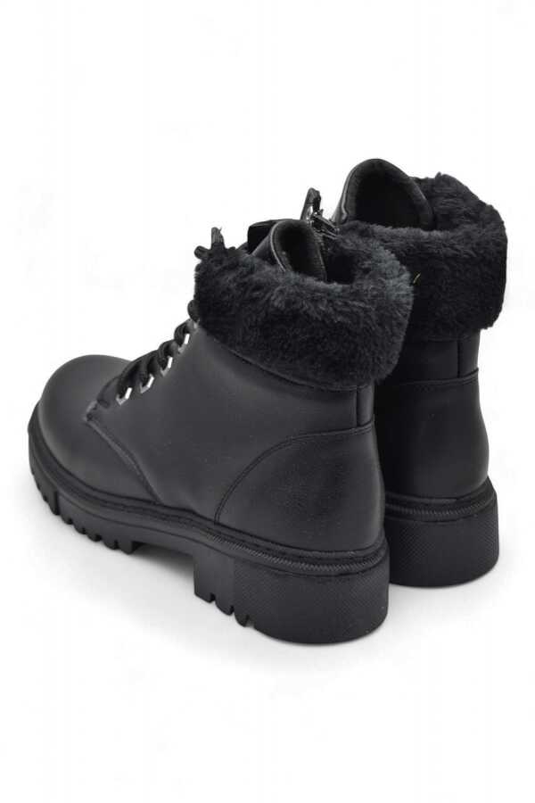 19832 Tam Ortopedik Siyah Hakiki Deri Kadın Bot Bağcıklı Fermuarlı Kışlık Deri Kadın Bot