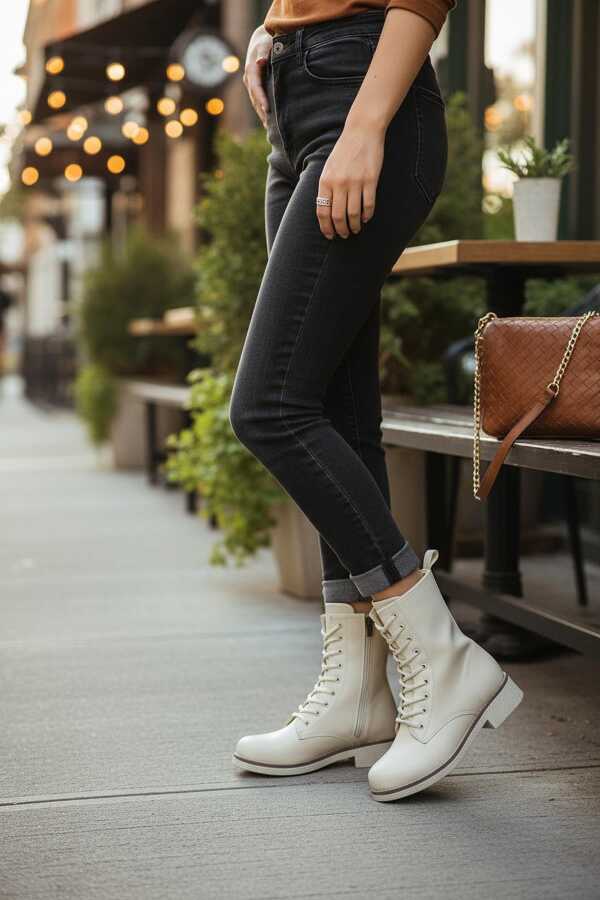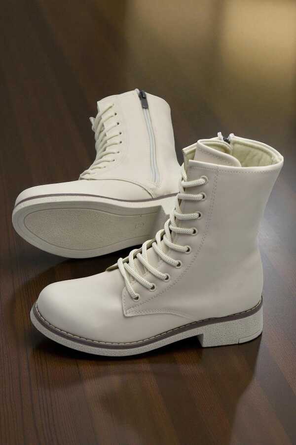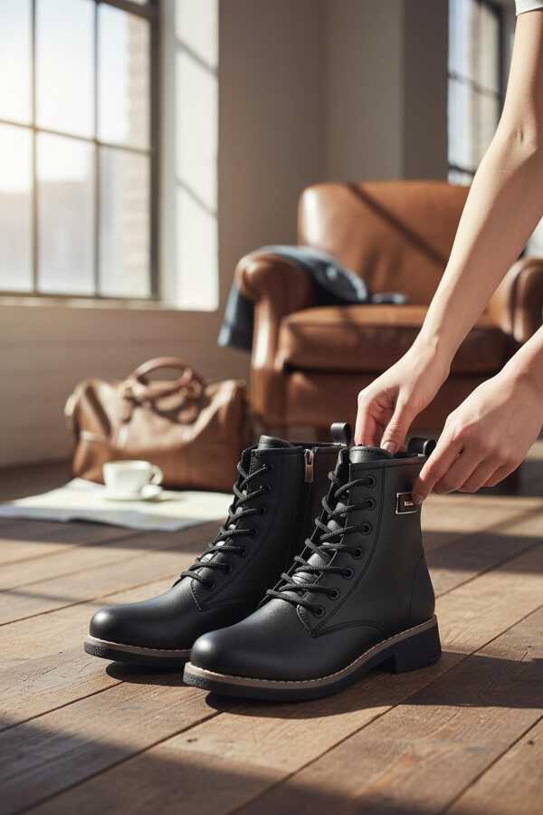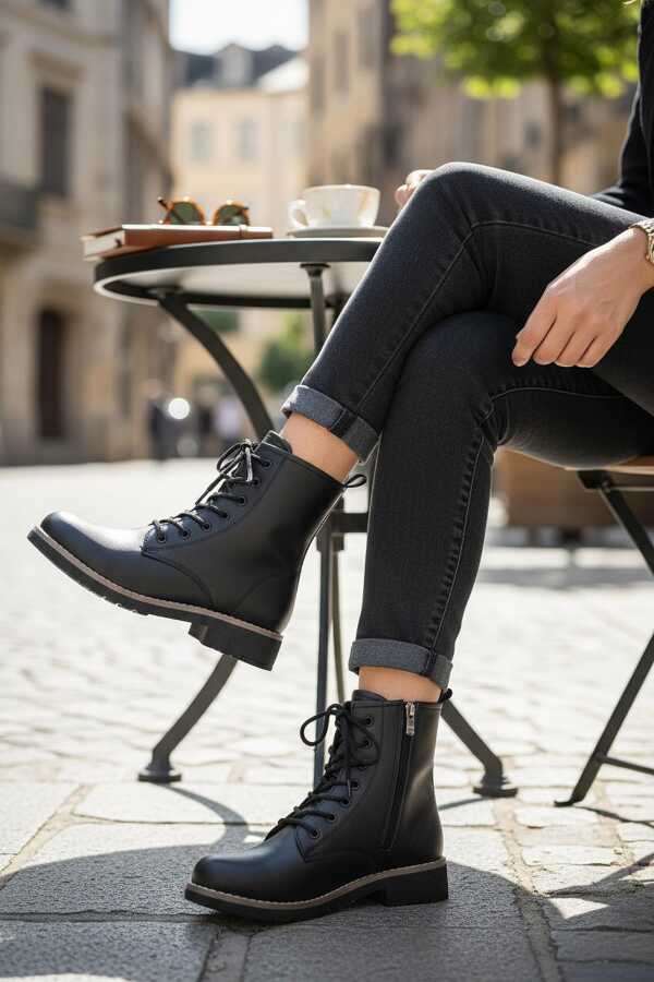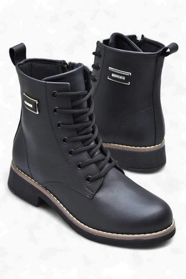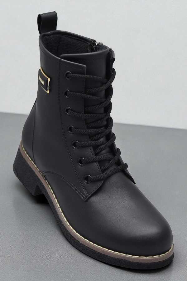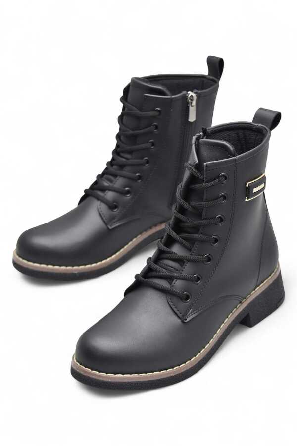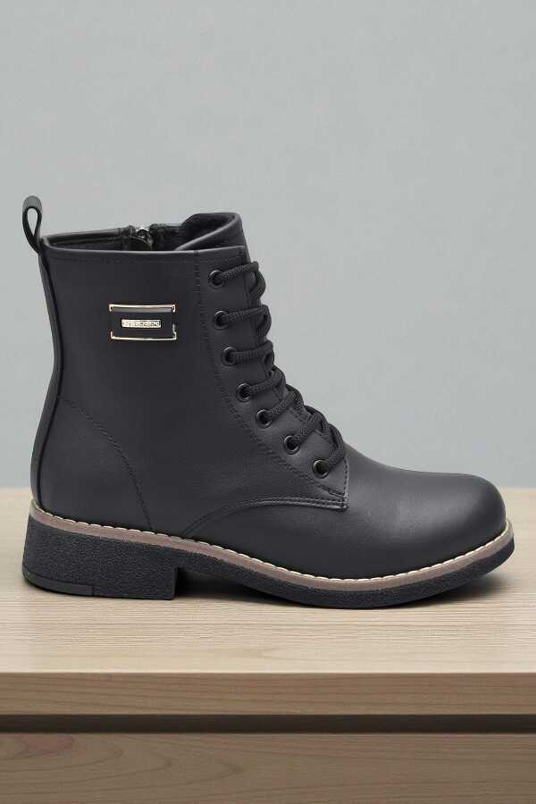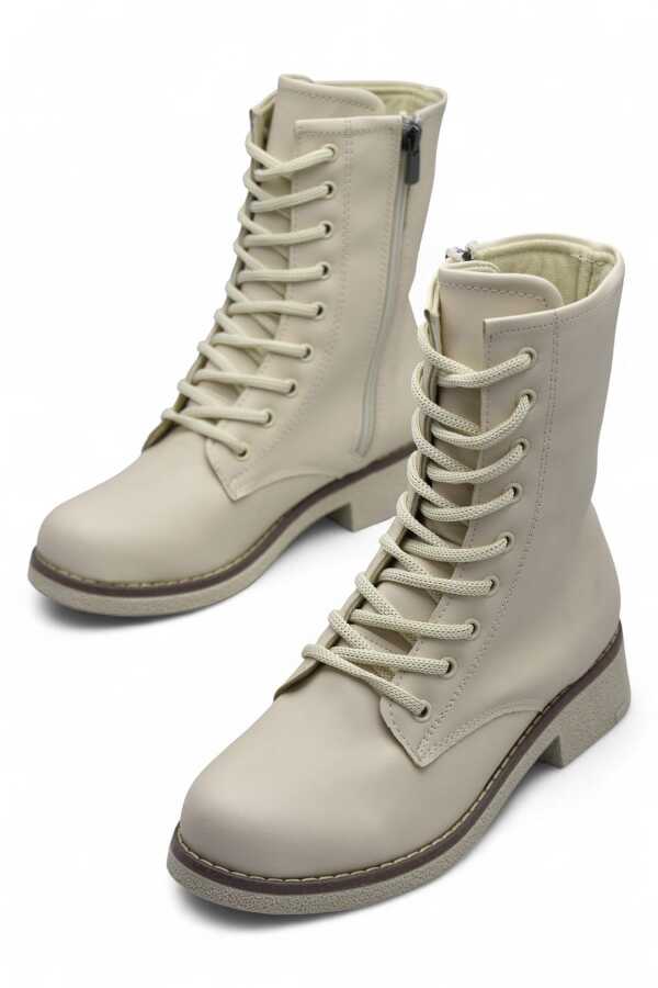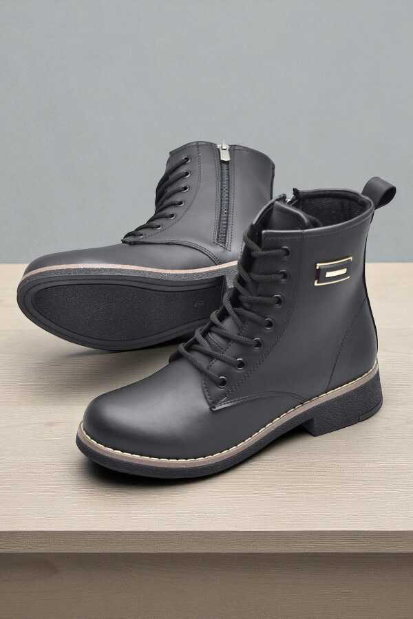 4659 Kadın Bot Ayakkabı Kaymaz Taban Fermuarlı Bağcıklı Günlük Kadın Bot