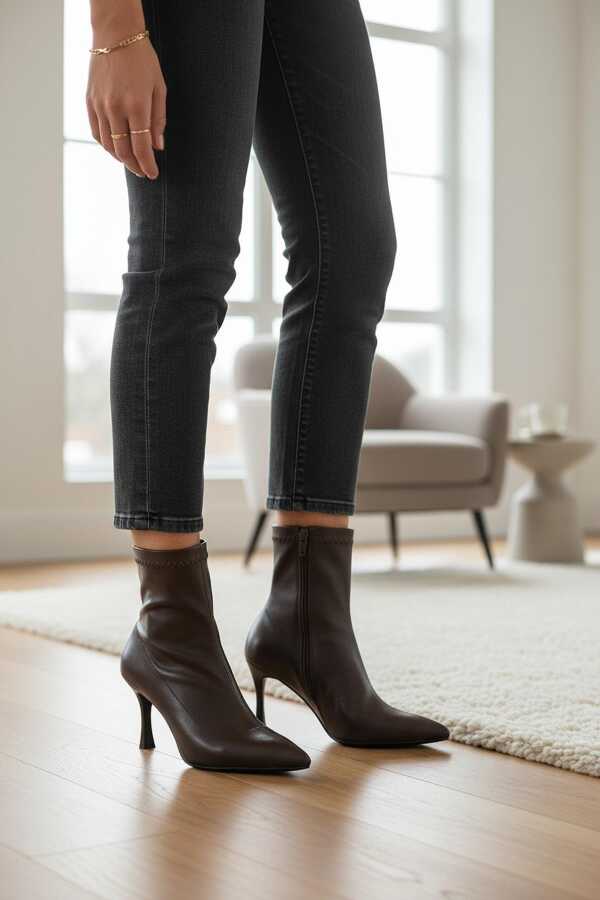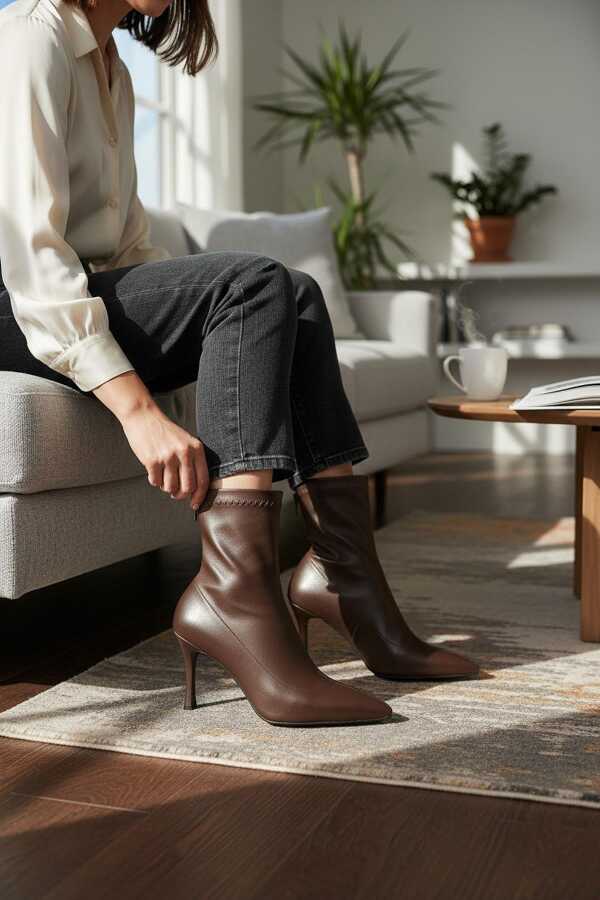 452 Kısa Topuklu Kadın Bot Ayakkabı Sade Klasik Ofis Gündelik Kadın Bot