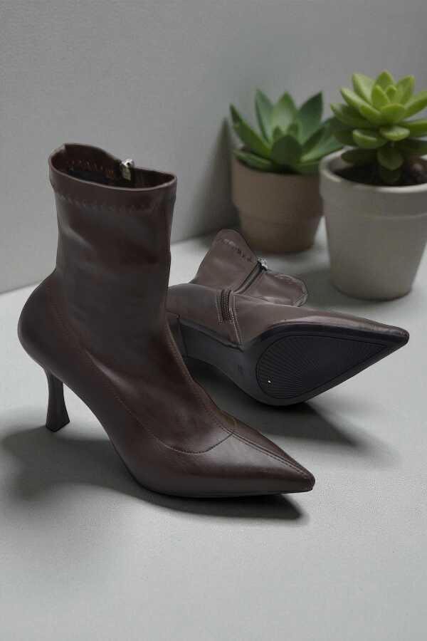 564FD Günlük Fermuarlı Kadın Topuklu Bot Ayakkabı İnce Topuk Klasik Topuklu Bot