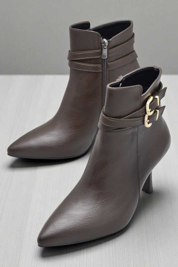 564FD Günlük Fermuarlı Kadın Topuklu Bot Ayakkabı İnce Topuk Klasik Topuklu Bot