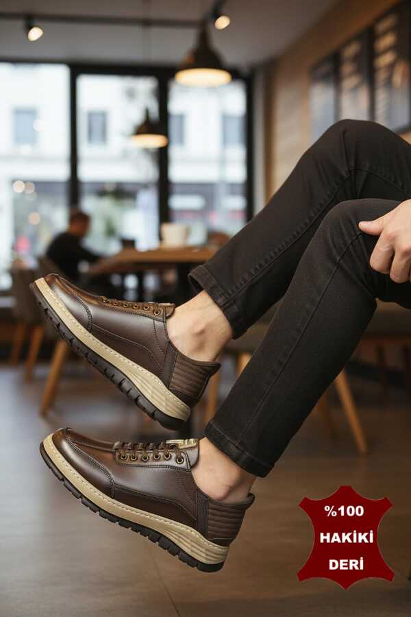 1217-1 Ortopedik Taban Hakiki Deri Günlük Erkek Ayakkabı Kauçuk Taban Casual Ayakkabı
