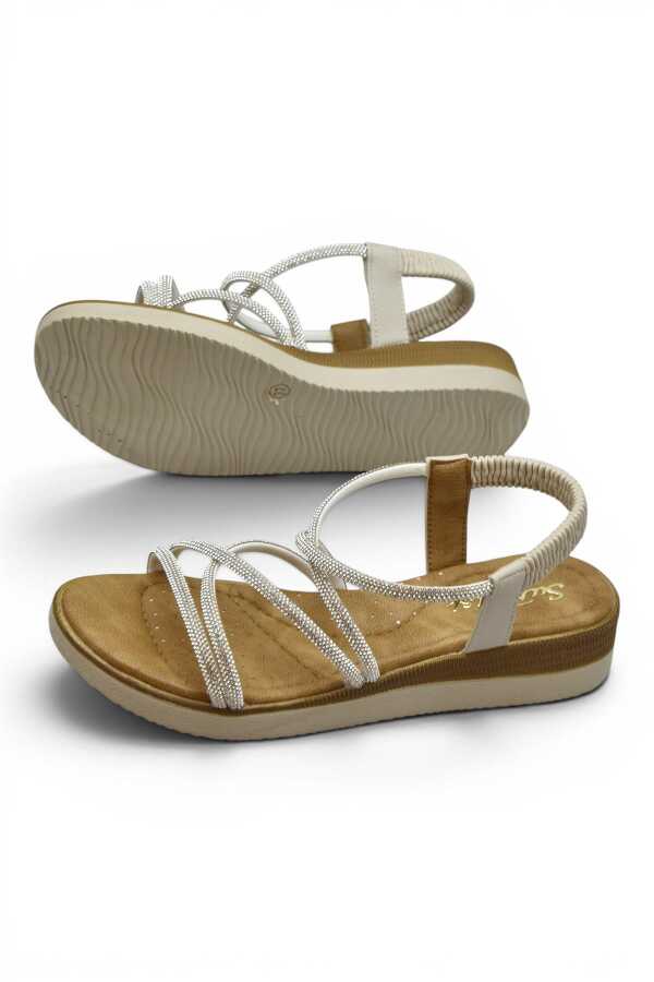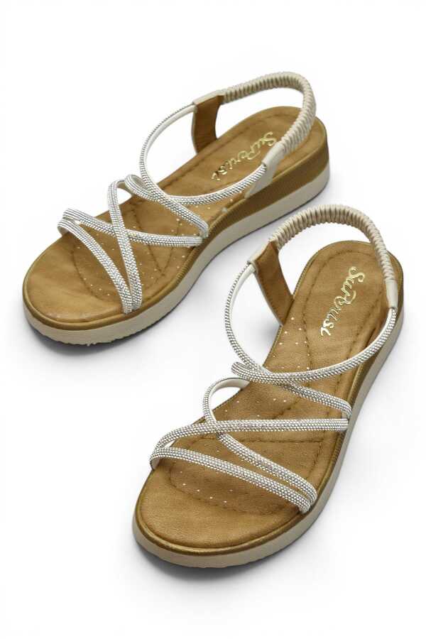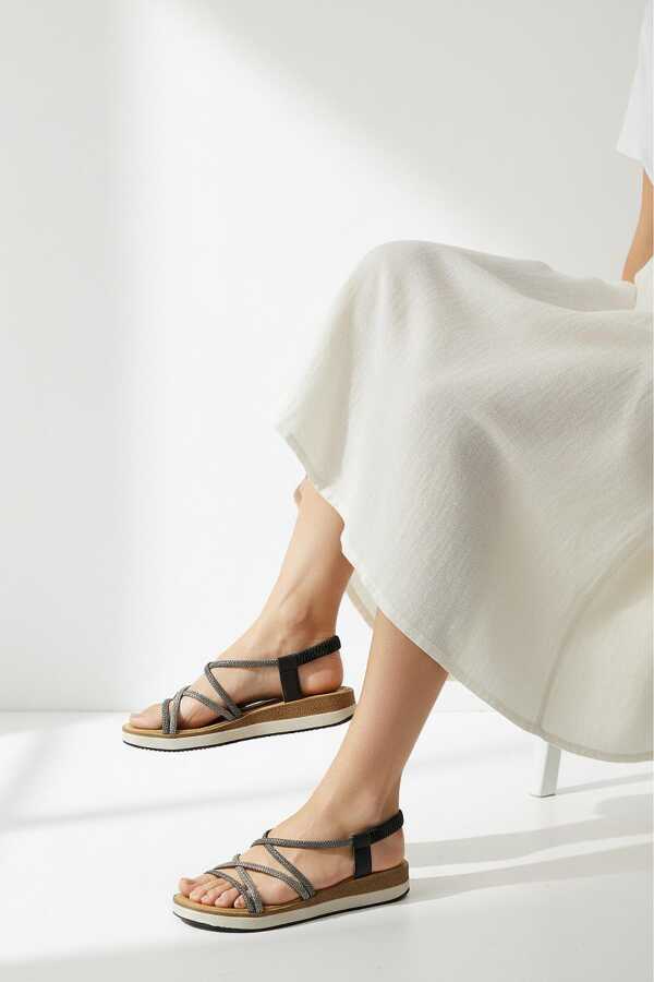 Bu özel model, zarif detayları ve gümüş renkli metal Taşları dikkat çekerken, gün boyu ayakta kalanlar için konforu ön planda tutuyor.