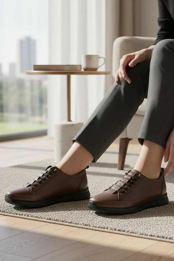 605 Tam Ortopedik Poli Hafif Taban Günlük Hakiki Deri Kadın Ayakkabı Lastikli